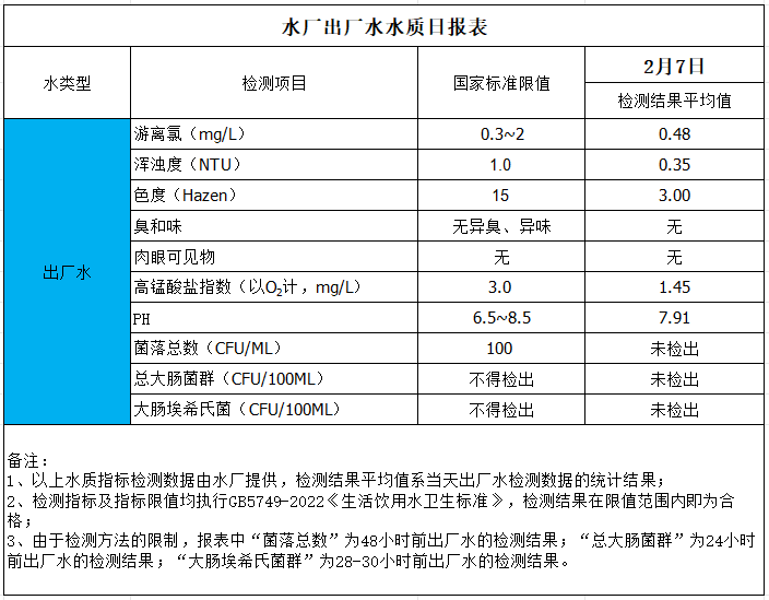 水廠出廠水水質(zhì)日報表(2025-2-7)