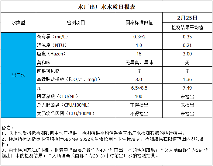 水廠出廠水水質(zhì)日?qǐng)?bào)表(2025-2-25)