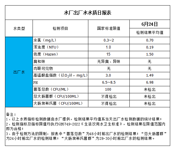 水廠出廠水水質(zhì)日報(bào)表(2023-6-24)