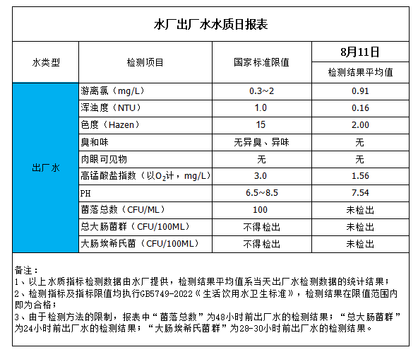 水廠出廠水水質日報表(2023-8-11)