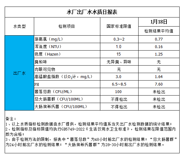 水廠出廠水水質日報表(2024-1-18)