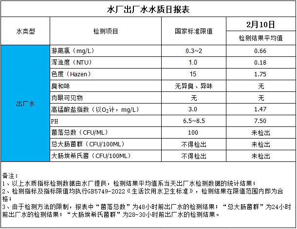 水廠出廠水水質(zhì)日?qǐng)?bào)表(2024-2-10)